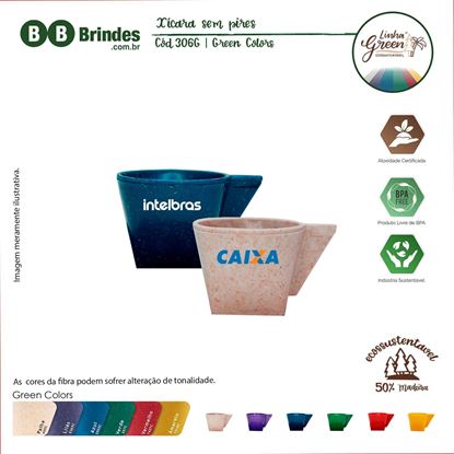 Xícara Café 50ml Green Colors, feita com 50% de fibra natural de madeira e 50% de PP que garante durabilidade ao produto. Agora disponível em 6 cores especiais que utilizam pigmentos orgânicos na fabricação. Design exclusivo do Grupo BB.