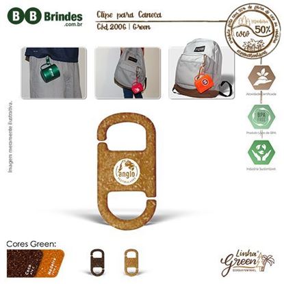 Com acabamento impecável e matéria prima sustentável feito com 50% de fibra de coco ou madeira e 50% de PP, o clipe para caneca foi desenvolvido para fixar canecas em mochilas e/ou bolsas.